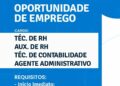 Empresa está selecionando Téc. de rh, Aux. de rh, Téc. de contabilidade, Agente administrativo; Envie seu currículo!