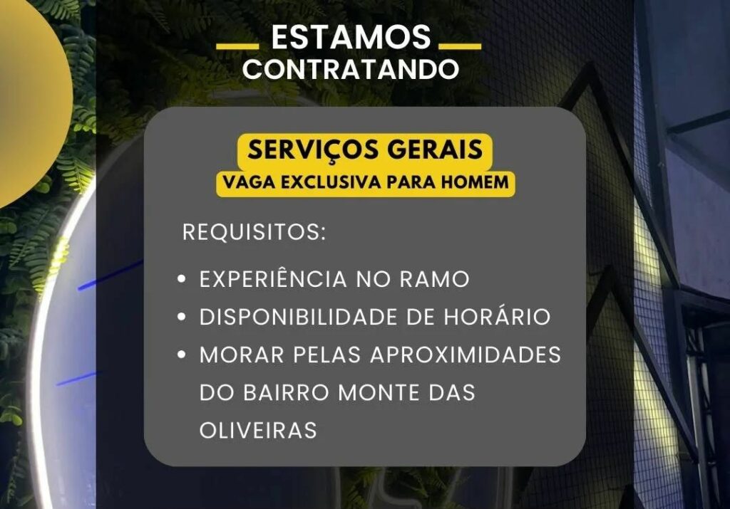 Empresa seleciona para vaga de Serviços Gerais; Envie seu currículo!