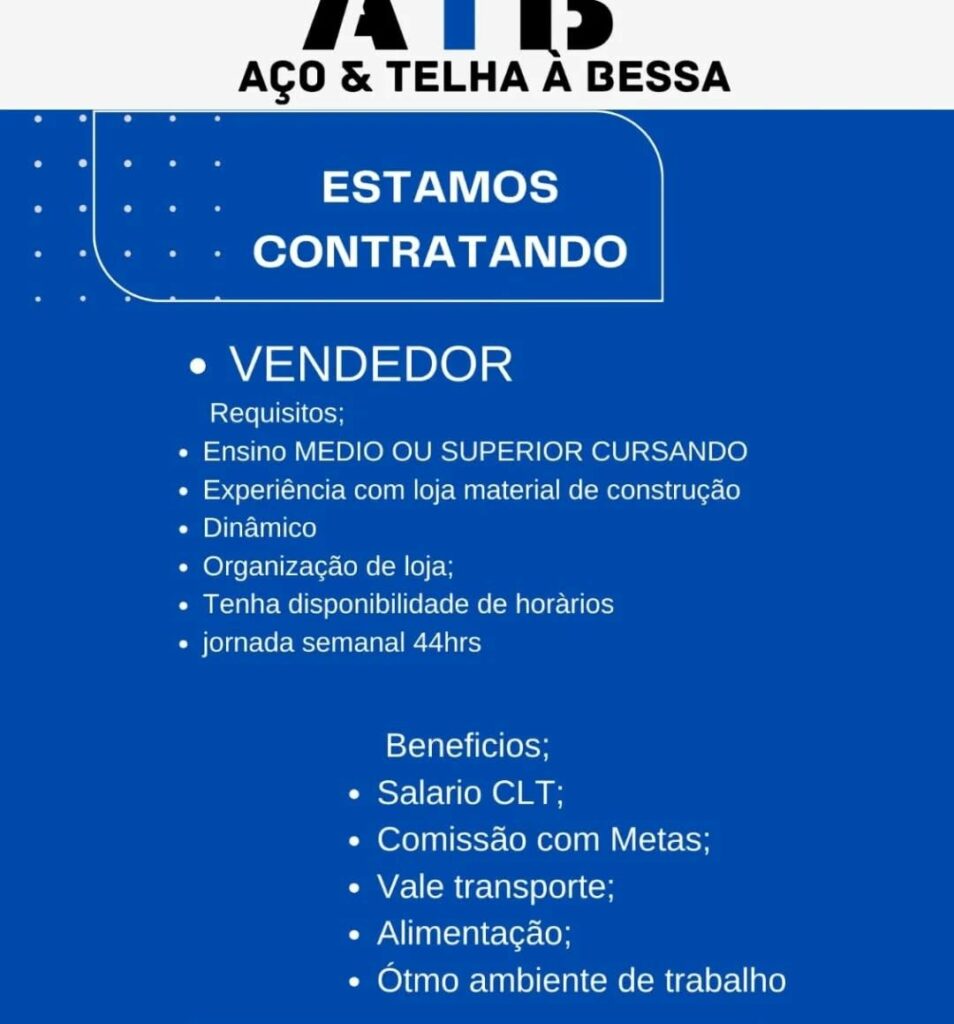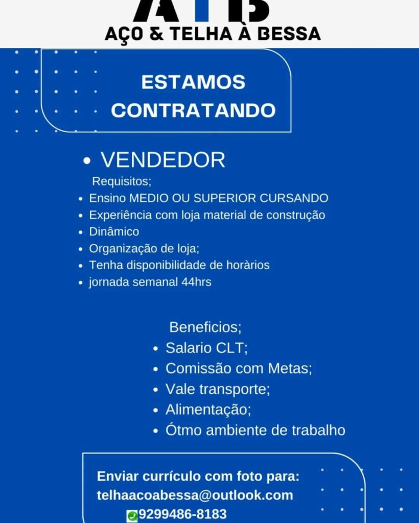 Aço & telha seleciona Vendedor; Envie seu currículo!