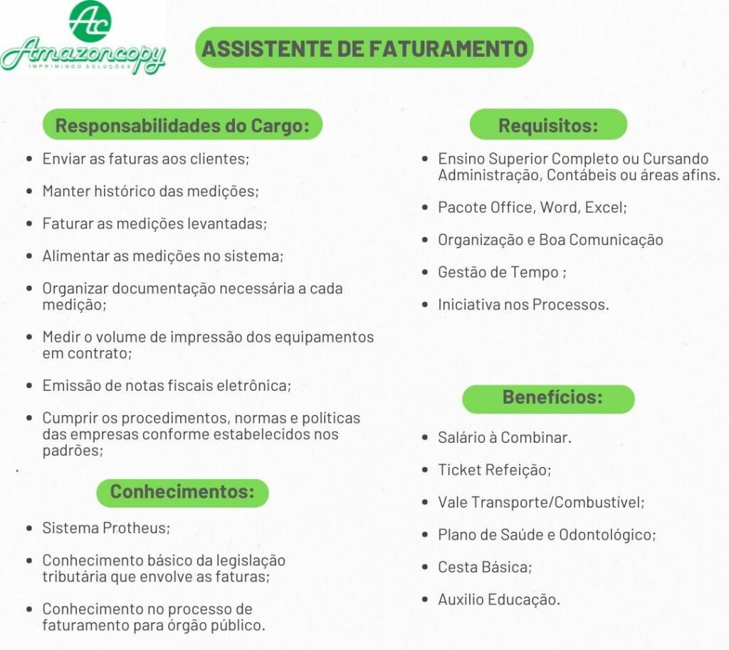 Amazoncopy está selecionando Assistente de Faturamento; Envie seu currículo!