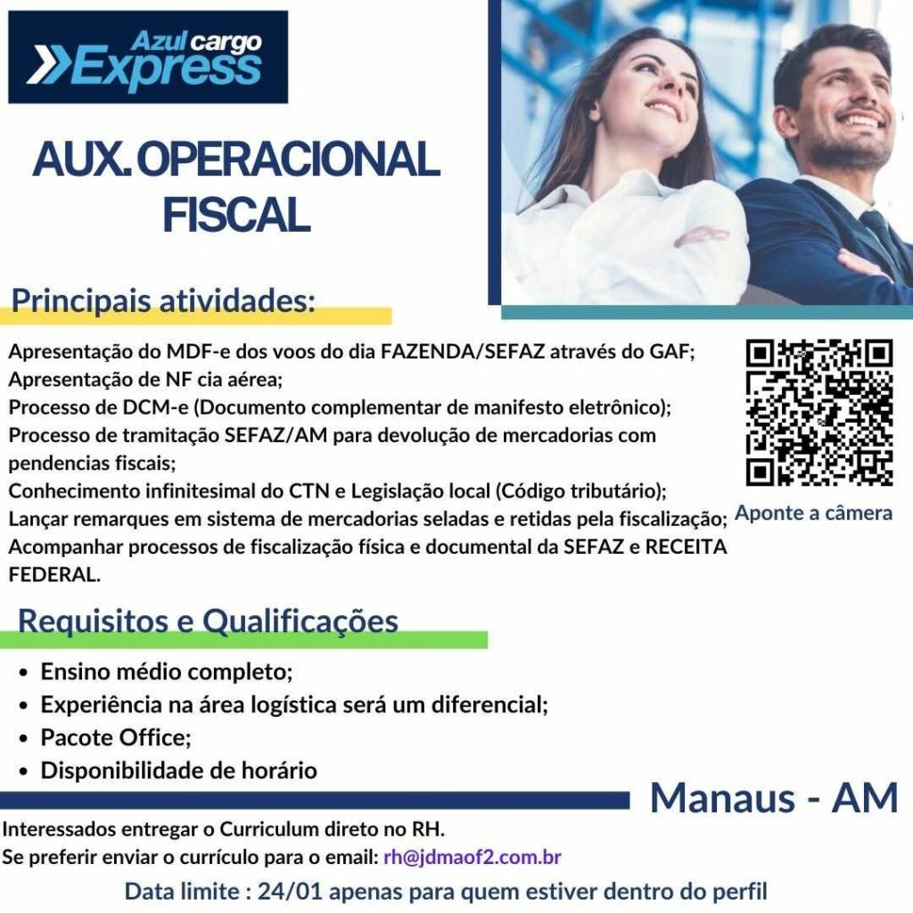 Azul cargo express seleciona Auxiliar operacional fiscal, Auxiliar operacional; Envie seu currículo!
