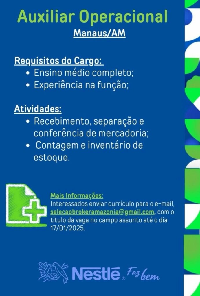 Broker da Amazônia Seleciona para vaga de Auxiliar operacional; Envie seu currículo!
