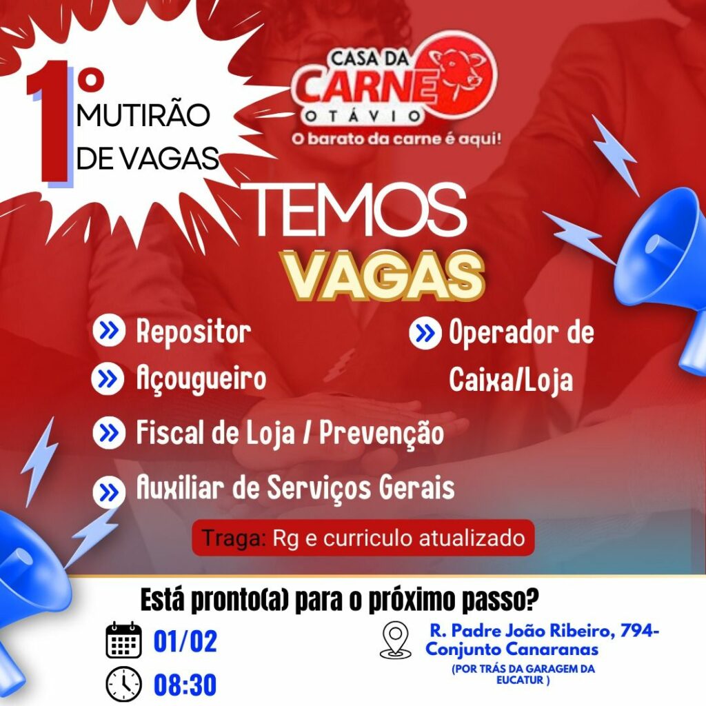 Casa da carne Otávio abre seleção para Repositor, Açougueiro, Fiscal de loja / prevenção, Auxiliar de serviços gerais, Operador de caixa loja; Envie seu currículo!