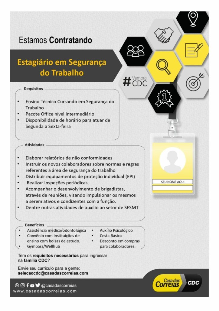 O processo seletivo para esta(s) vaga(s) não cobra absolutamente nada pela sua candidatura. Portanto, jamais aceite qualquer tipo de cobrança para cadastrar seu currículo.