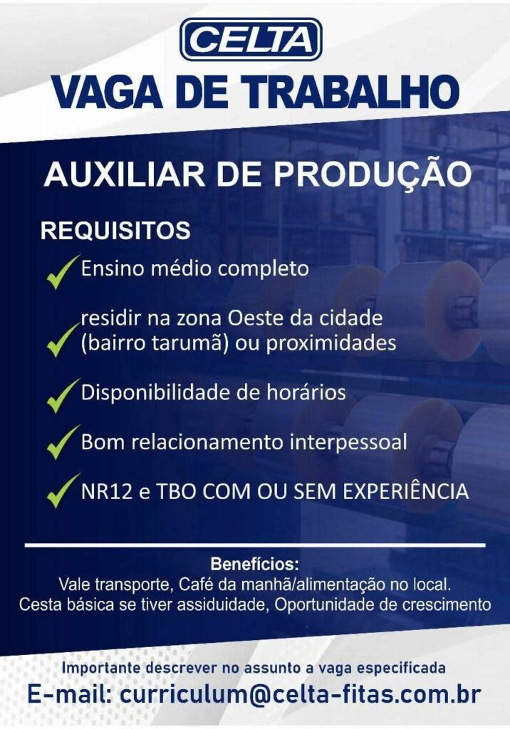Celta fitas seleciona Auxiliar de produção; Envie seu currículo!