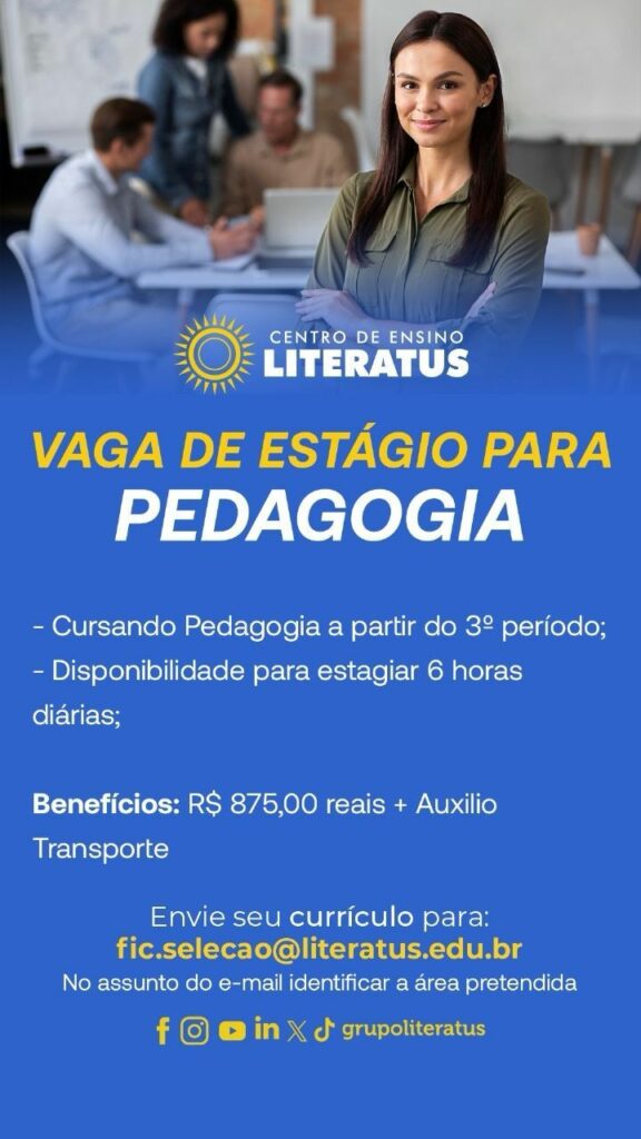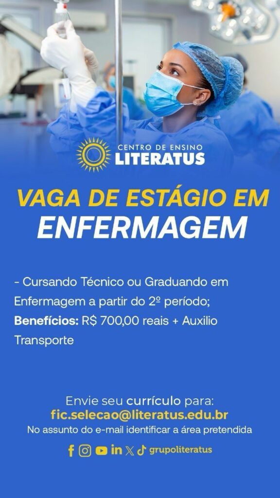 Centro de ensino Literatus seleciona Estágio em enfermagem, Estágio em Pedagogia; Envie seu currículo!