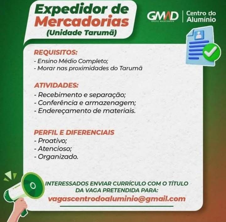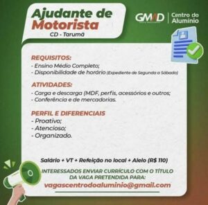 Centro do alumínio seleciona Expedidor de mercadorias, Ajudante de Motorista, Auxiliar de serviços gerais; Envie seu currículo!