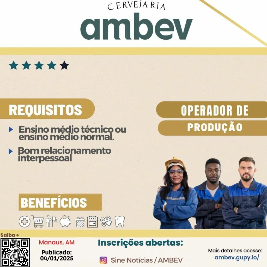 Cervejaria Ambev seleciona Operador de produção e Jovem Aprendiz; Envie seu currículo!
