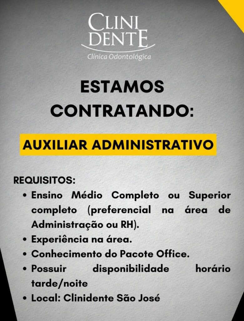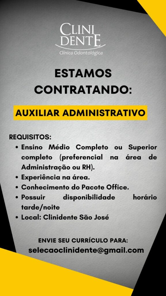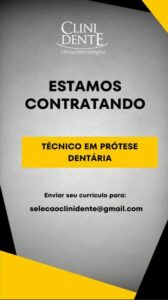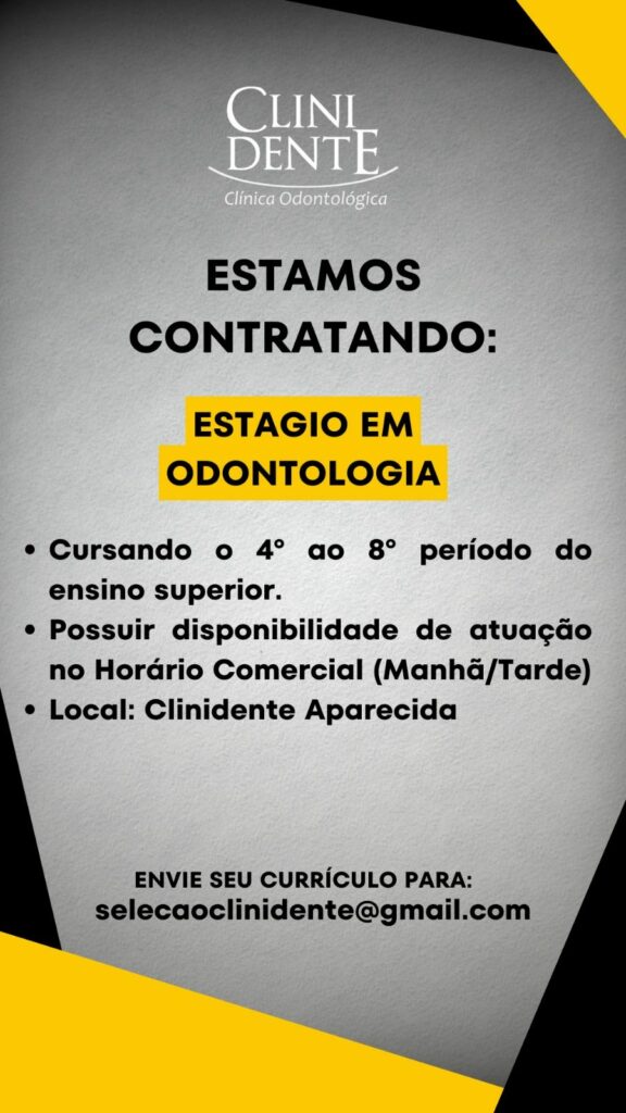 Clínica de Odontologia contrata Estágio em Odontologia, Técnico em prótese dentária, Auxiliar administrativo; Envie seu currículo!