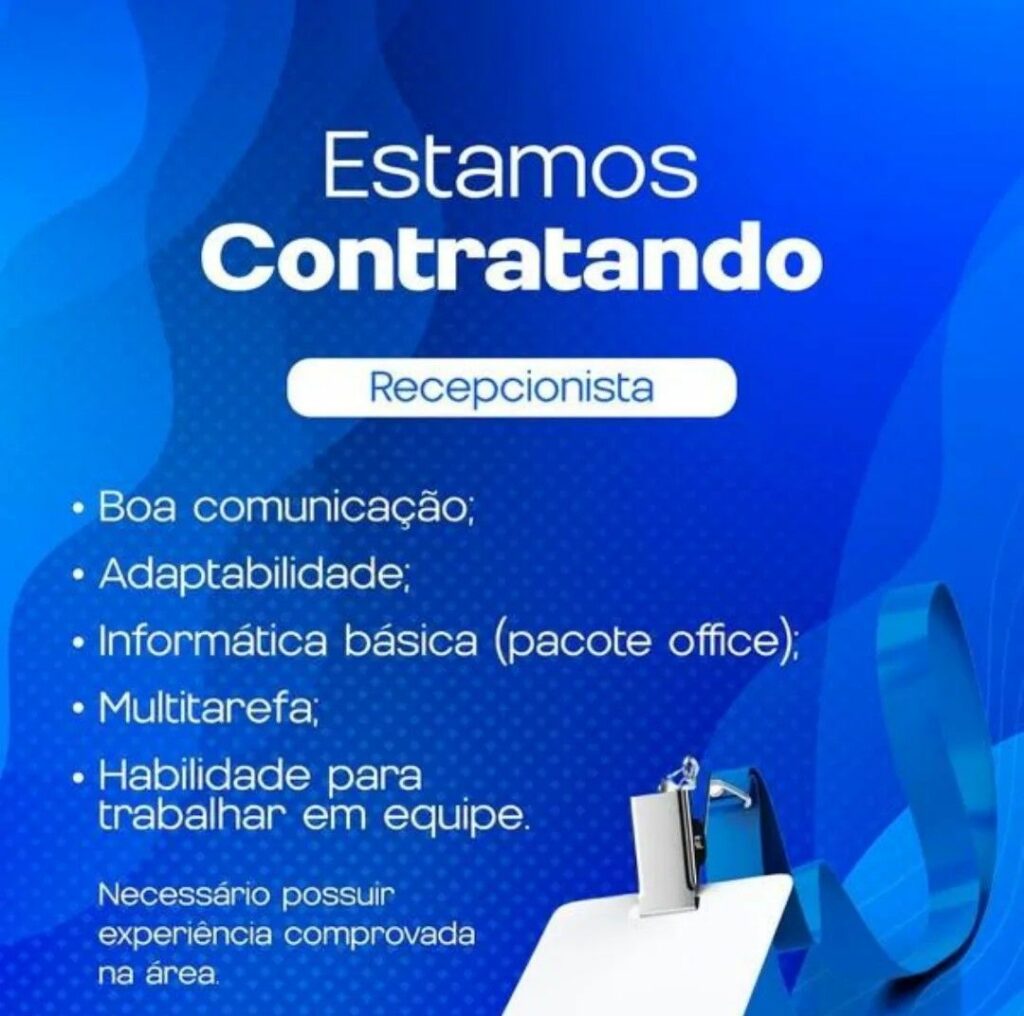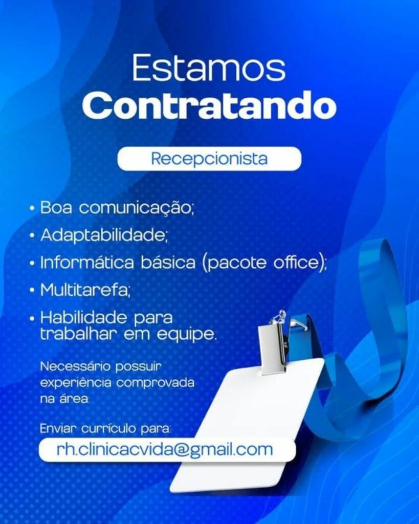 Clínica está selecionando Recepcionista; Envie seu currículo!