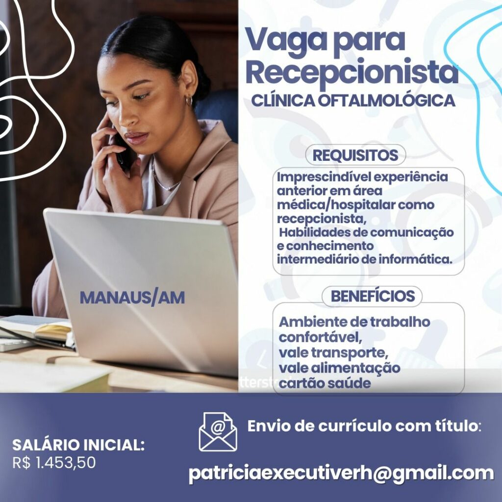 Clínica Oftalmológica seleciona Recepcionista; Envie seu currículo!