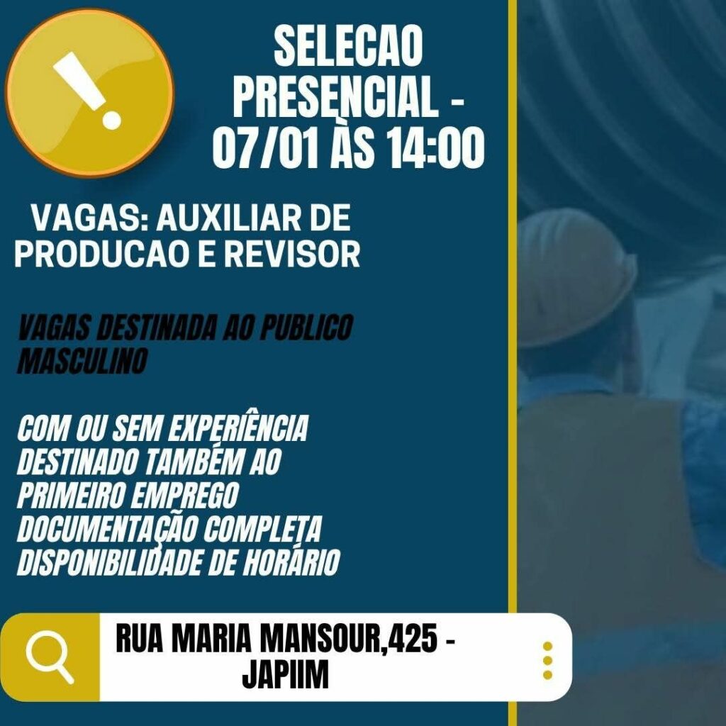 Com ou sem experiência RH seleciona para Auxiliar de Produção e Revisor