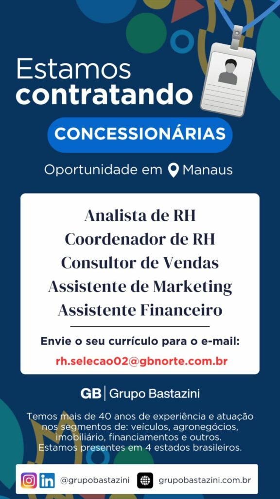 Concessionária seleciona Analista de rh, Coordenador de rh, Consultor de vendas, Assistente de marketing, Assistente financeiro; Envie seu currículo!