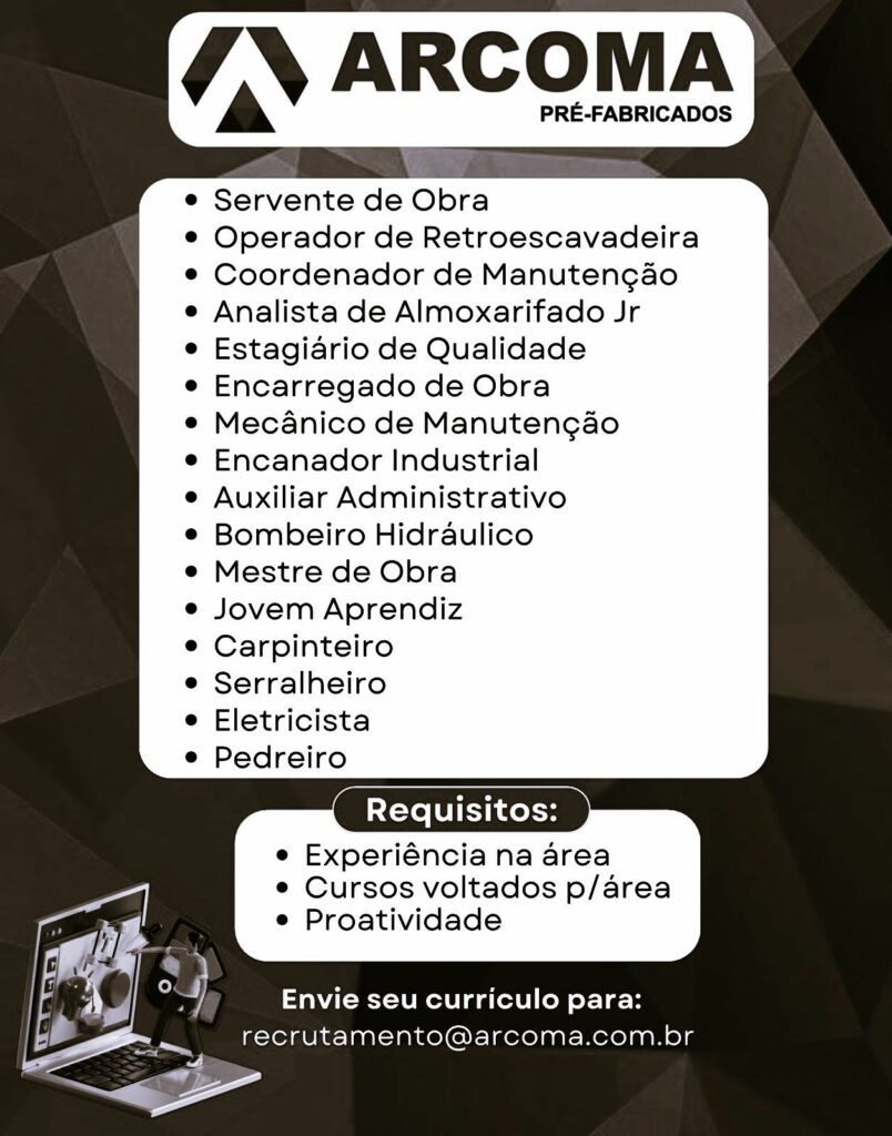 Confira 16 oportunidades de emprego da empresa Arcoma