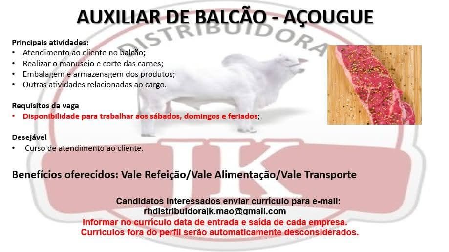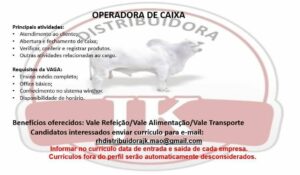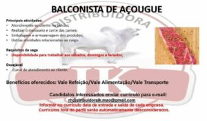 Distribuidora seleciona Auxiliar de balcão açougue, Balconista de açougue, Operadora de caixa; Envie seu currículo!