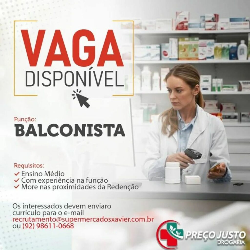 Drogaria deseja contratar Balconista; Envie seu currículo!