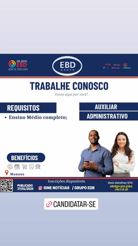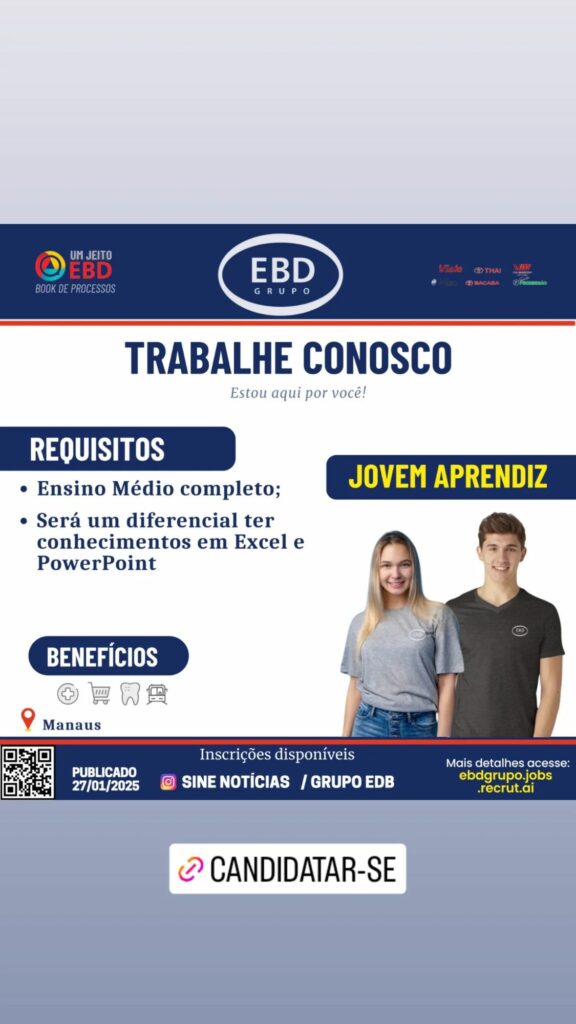 EBD está selecionando Jovem Aprendiz, Auxiliar administrativo; Envie seu currículo!