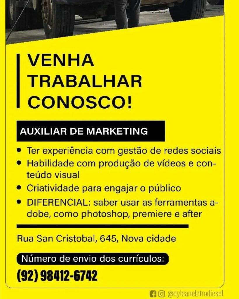 Empresa deseja contratar Auxiliar de marketing; Envie seu currículo!