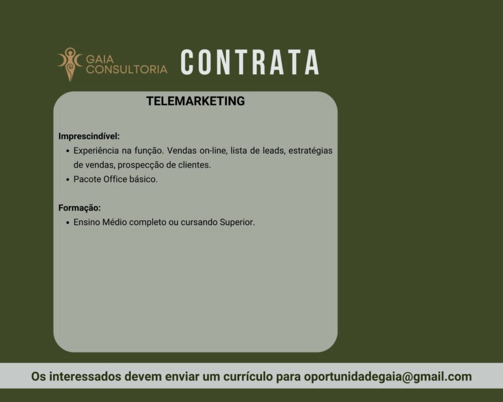 Empresa está contratando Telemarketing; Envie seu currículo!
