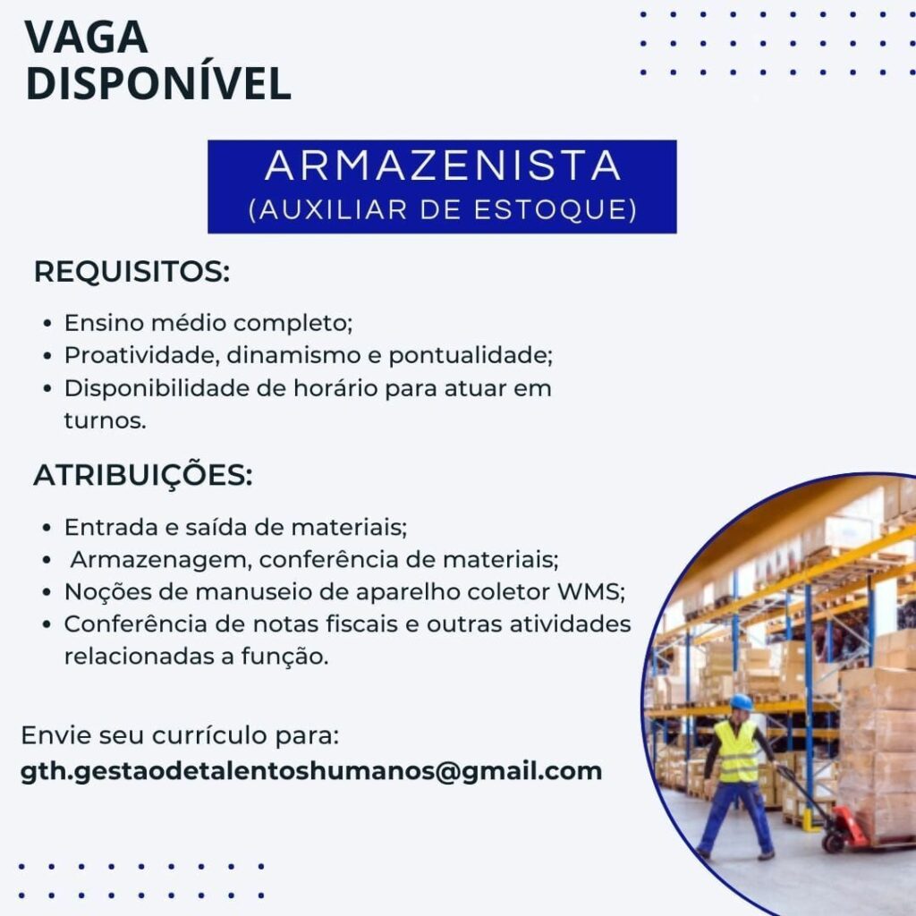 Empresa está selecionando Armazenista auxiliar de estoque; Envie seu currículo!