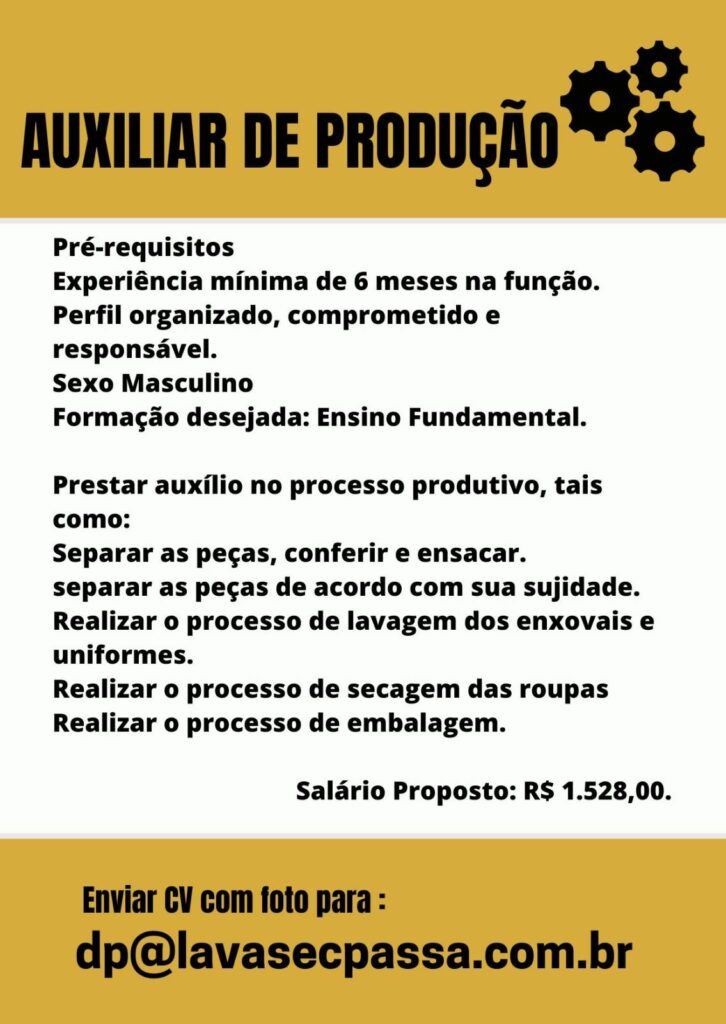 Empresa está selecionando Auxiliar de produção; Envie seu currículo!