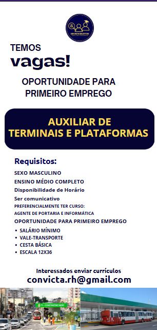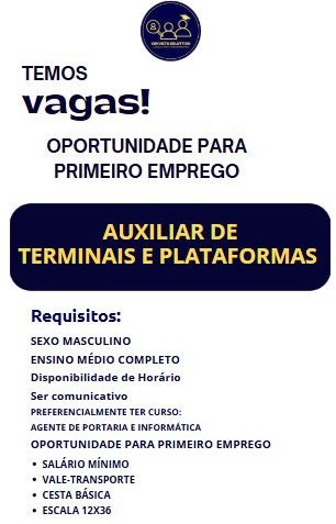 Empresa está selecionando Auxiliar de terminais e plataformas para Primeiro Emprego; Envie seu currículo!