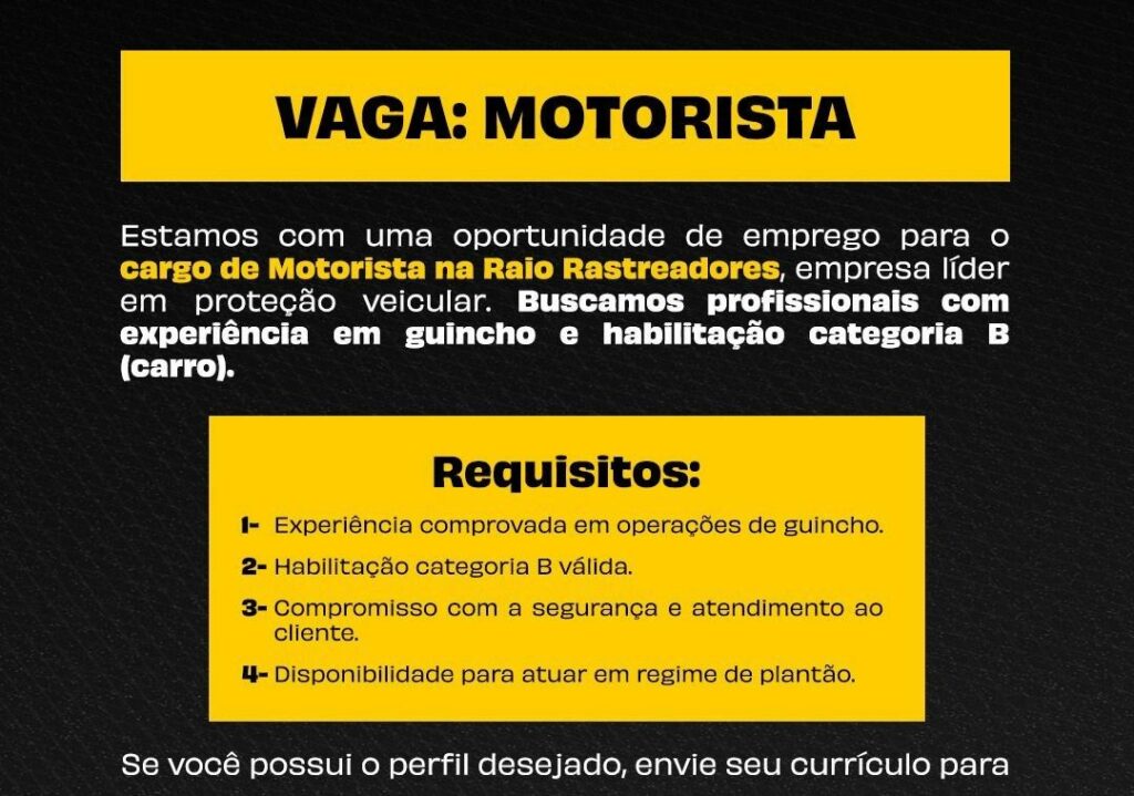 O processo seletivo para esta(s) vaga(s) não cobra absolutamente nada pela sua candidatura. Portanto, jamais aceite qualquer tipo de cobrança para cadastrar seu currículo.