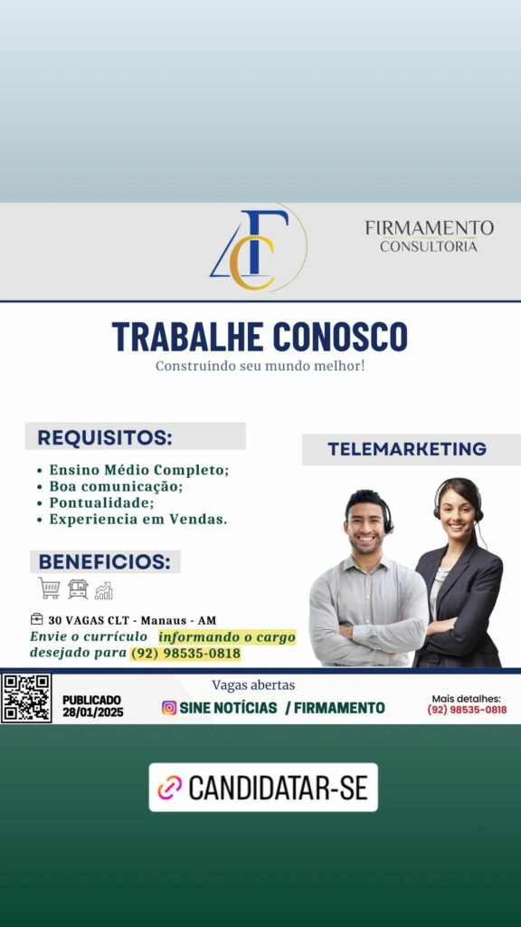 Empresa está selecionando Telemarketing; Envie seu currículo!