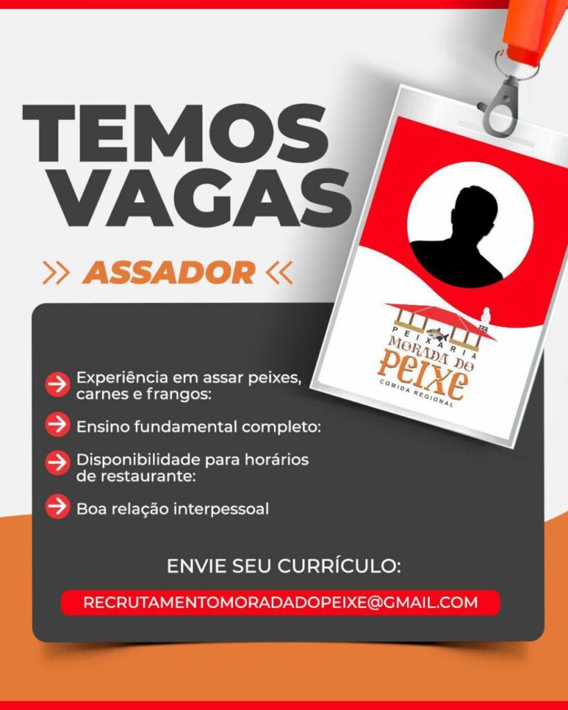Empresa Morada do peixe seleciona Auxiliar de serviços gerais, Assador, Auxiliar de estoque; Envie seu currículo!