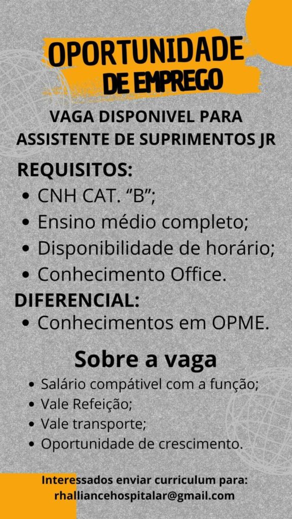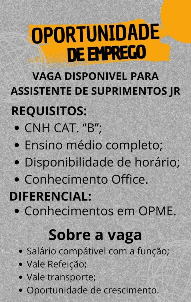 Empresa seleciona Assistente de Suprimentos jr; Envie seu currículo!