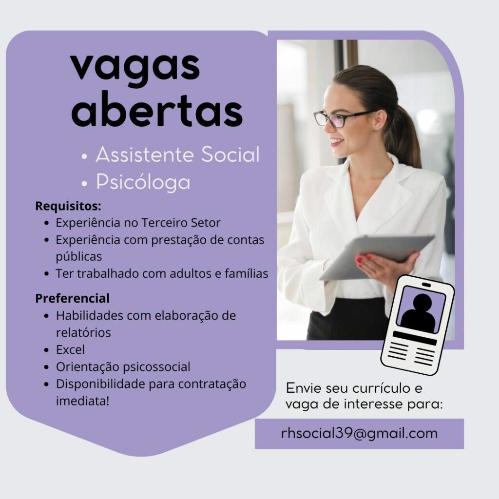 Empresa seleciona Assistente social, Psicóloga; Envie seu currículo!