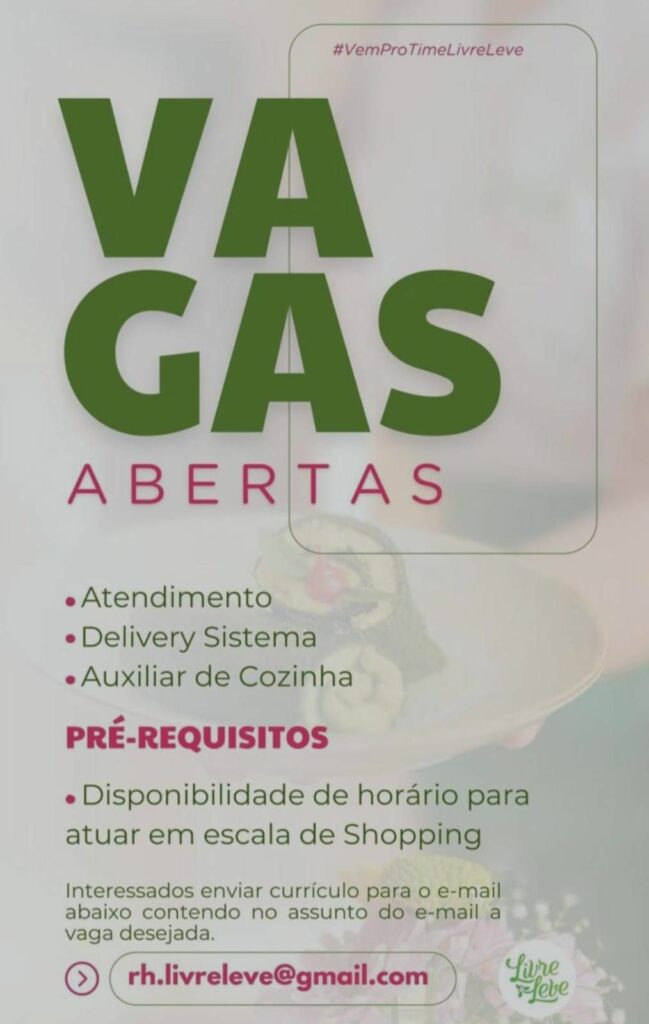Empresa seleciona Atendimento, Delivery sistema, Auxiliar de cozinha; Envie seu currículo!