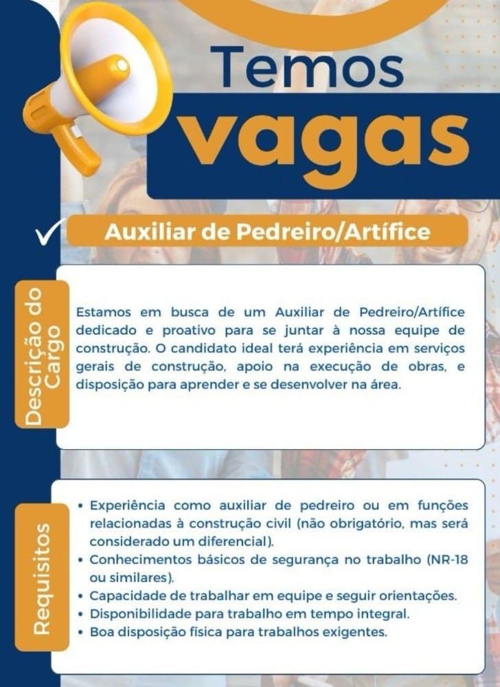 O processo seletivo para esta(s) vaga(s) não cobra absolutamente nada pela sua candidatura. Portanto, jamais aceite qualquer tipo de cobrança para cadastrar seu currículo.