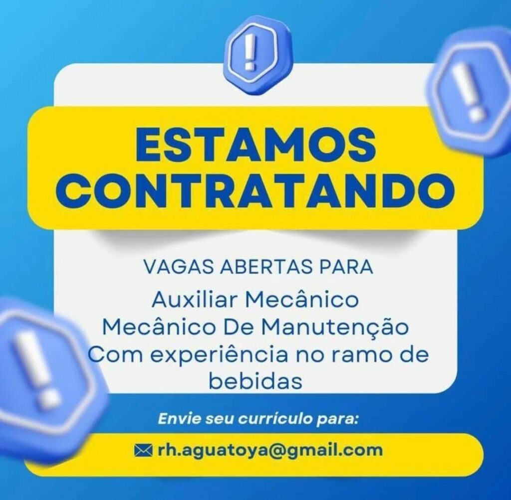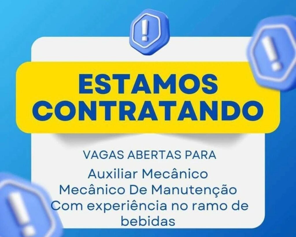Empresa seleciona Auxiliar mecânico, Mecânico de manutenção; Envie seu currículo!