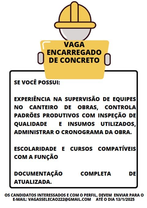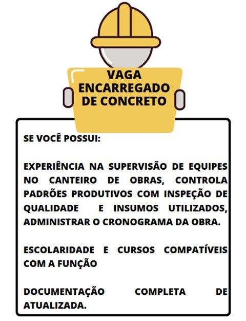 Empresa seleciona Encarregado de concreto; Envie seu currículo!