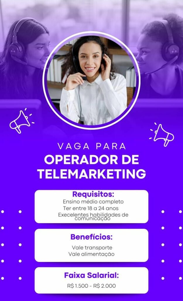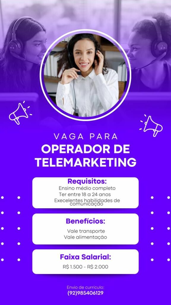 Empresa seleciona Operador de telemarketing; Envie seu currículo!