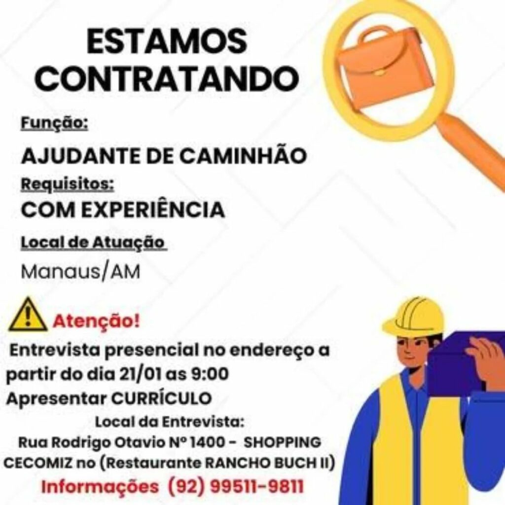 Empresa seleciona para vaga de Ajudante de caminhão; Envie seu currículo!