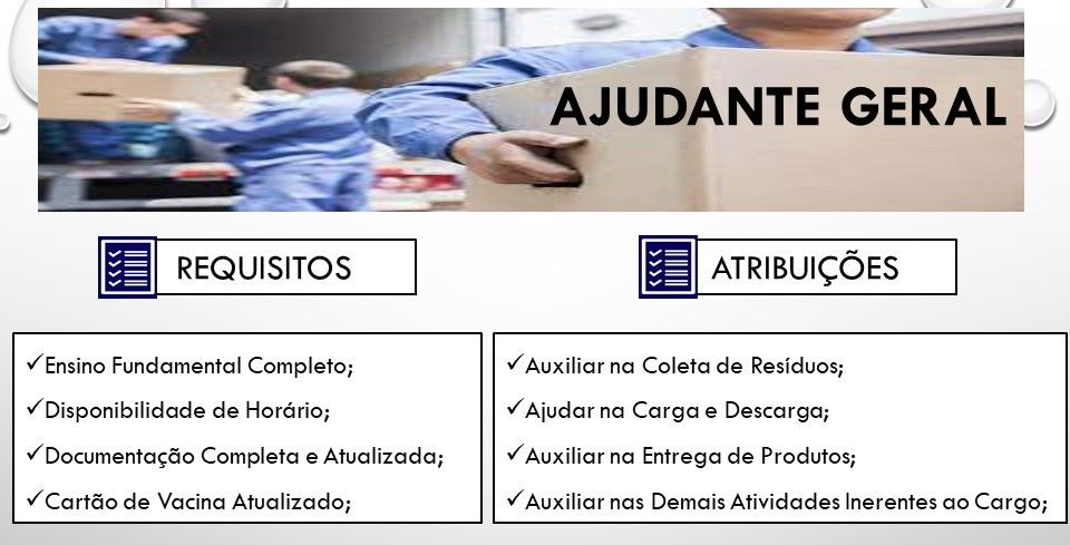 Empresa seleciona para vaga de Ajudante geral; Envie seu currículo!