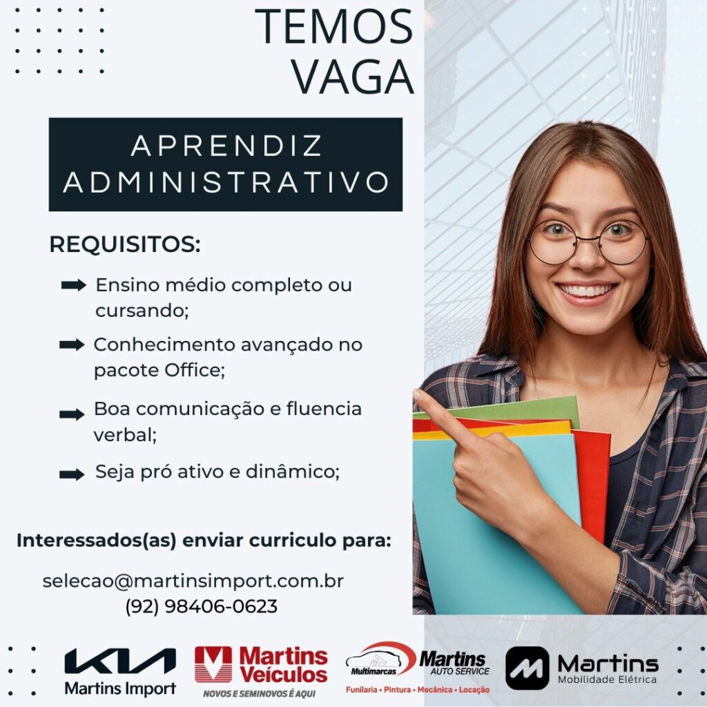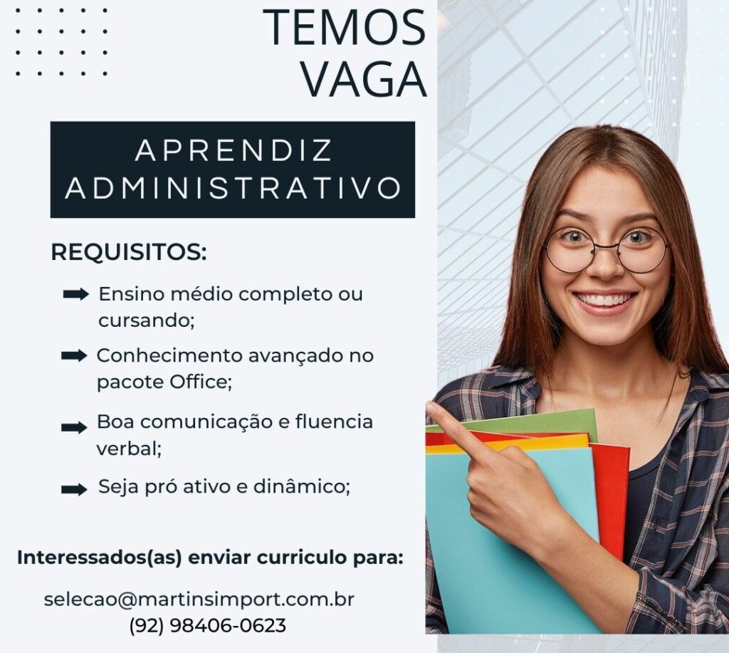 Empresa seleciona para vaga de Aprendiz administrativo; Envie seu currículo!