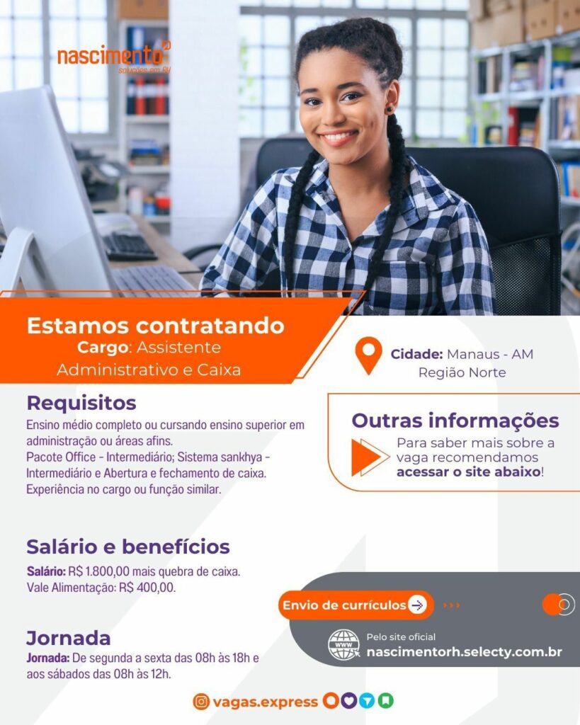 Empresa seleciona para vaga de Assistente Administrativo e caixa; Envie seu currículo!
