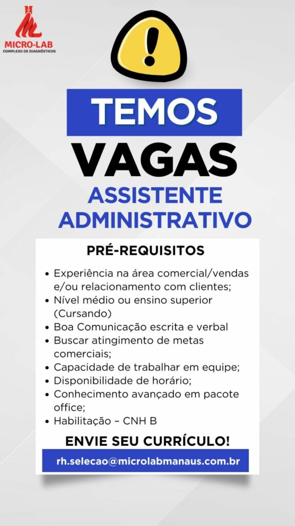Empresa seleciona para vaga de Assistente Administrativo; Envie seu currículo!