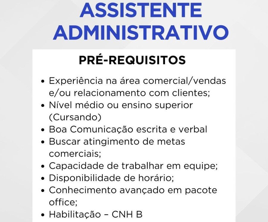 Empresa seleciona para vaga de Assistente Administrativo; Envie seu currículo!