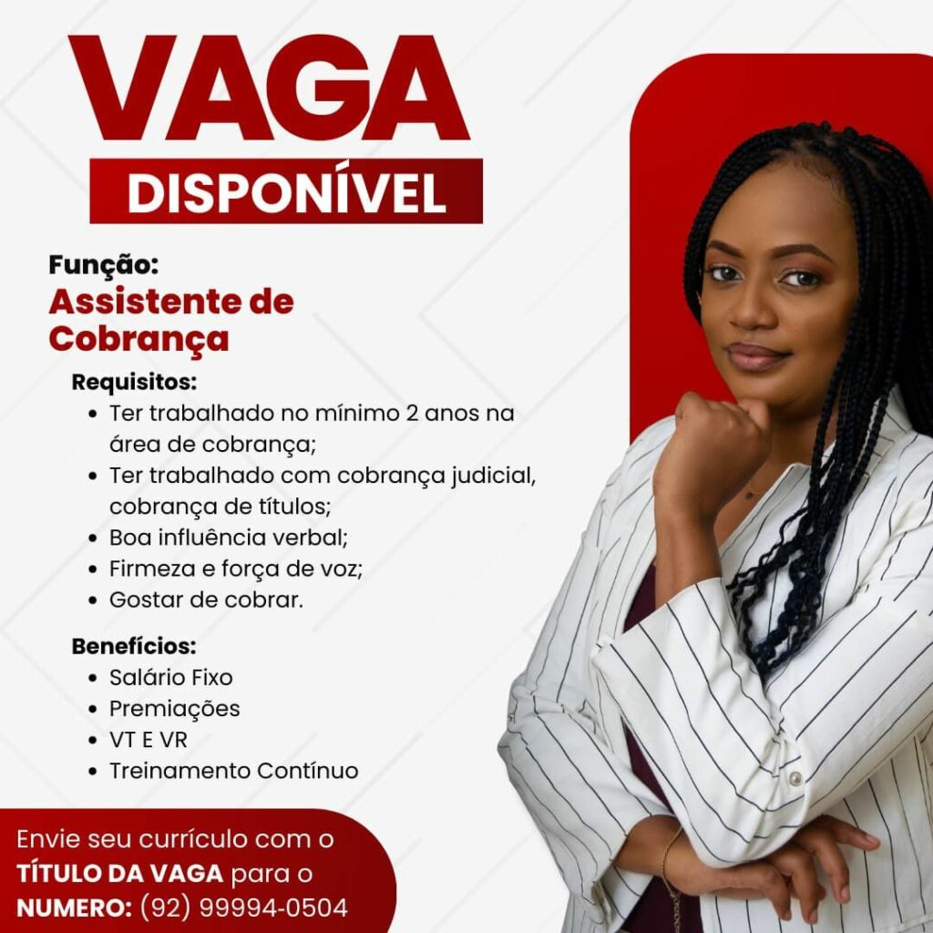 Empresa seleciona para vaga de Assistente de cobrança; Envie seu currículo!