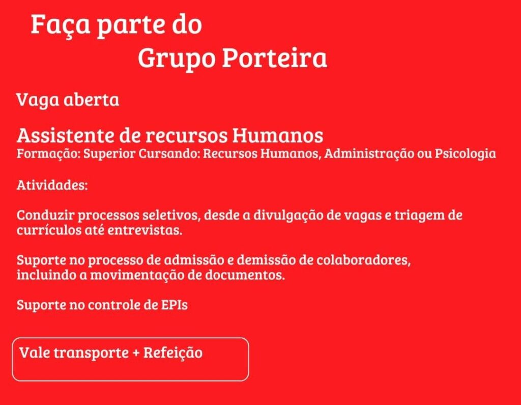 Empresa seleciona para vaga de Assistente de Recursos Humanos; Envie seu currículo!