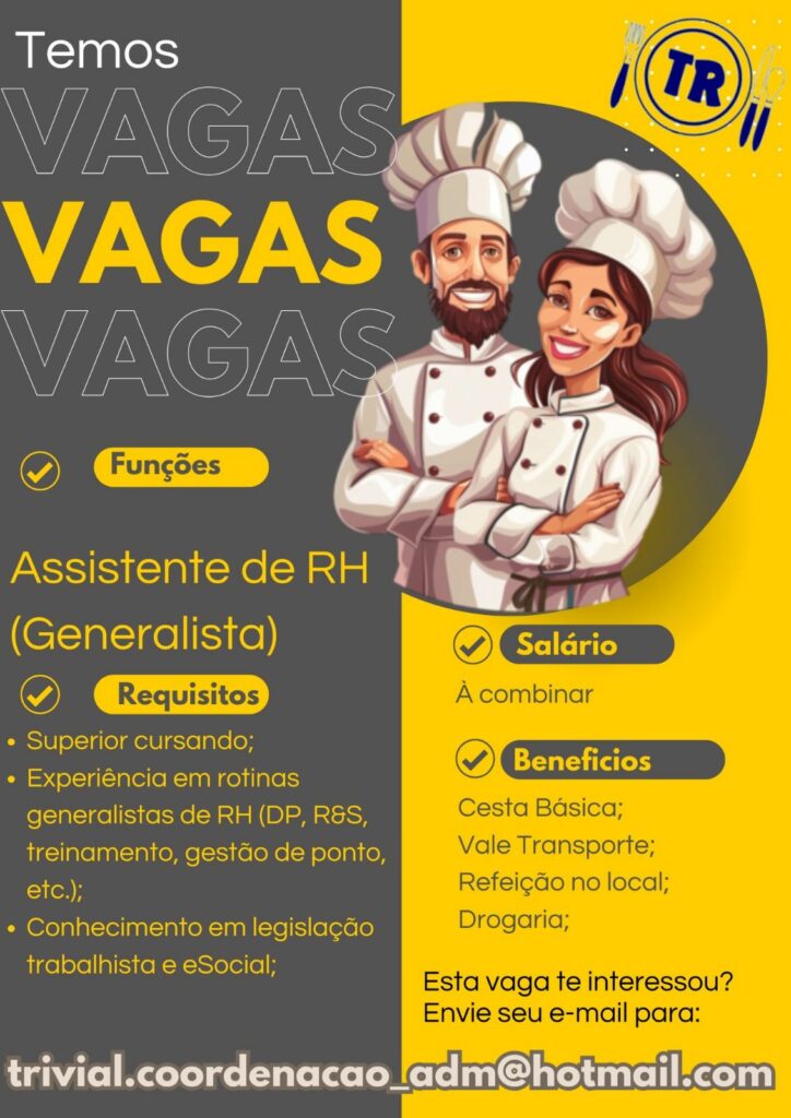 Empresa seleciona para vaga de Assistente de rh; Envie seu currículo!