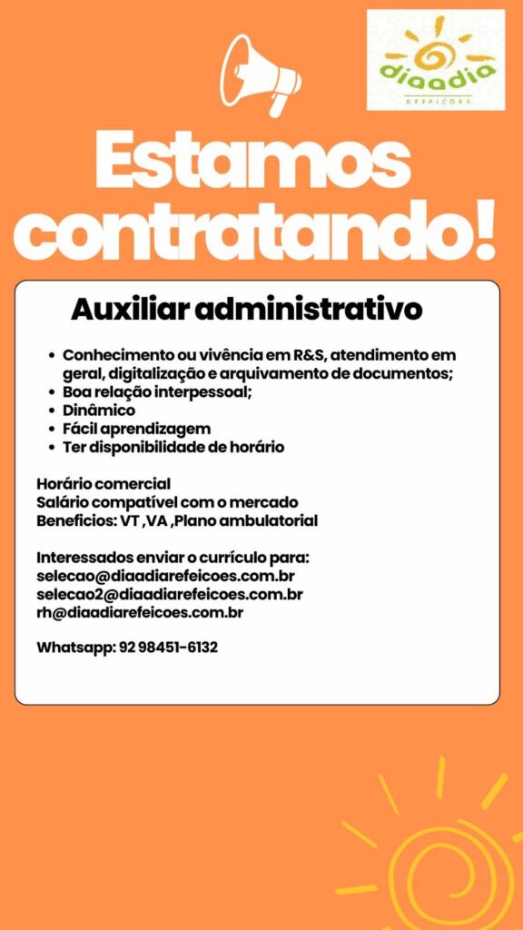 Empresa seleciona para vaga de Auxiliar administrativo; Envie seu currículo!