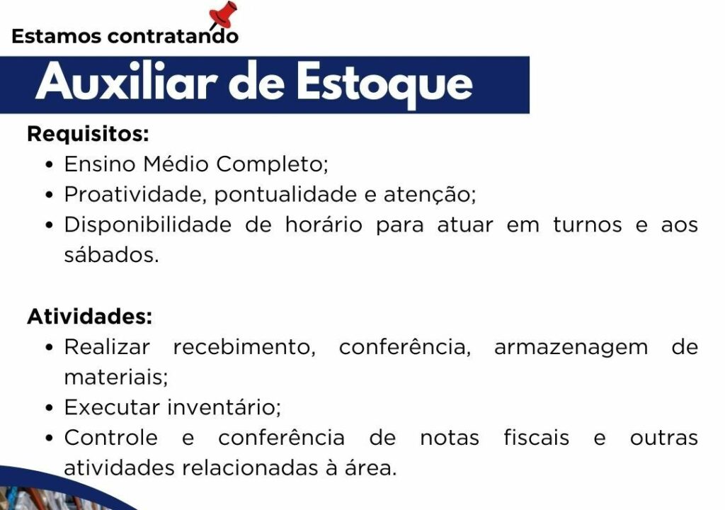 Empresa deseja contratar Almoxarife; Envie seu currículo!