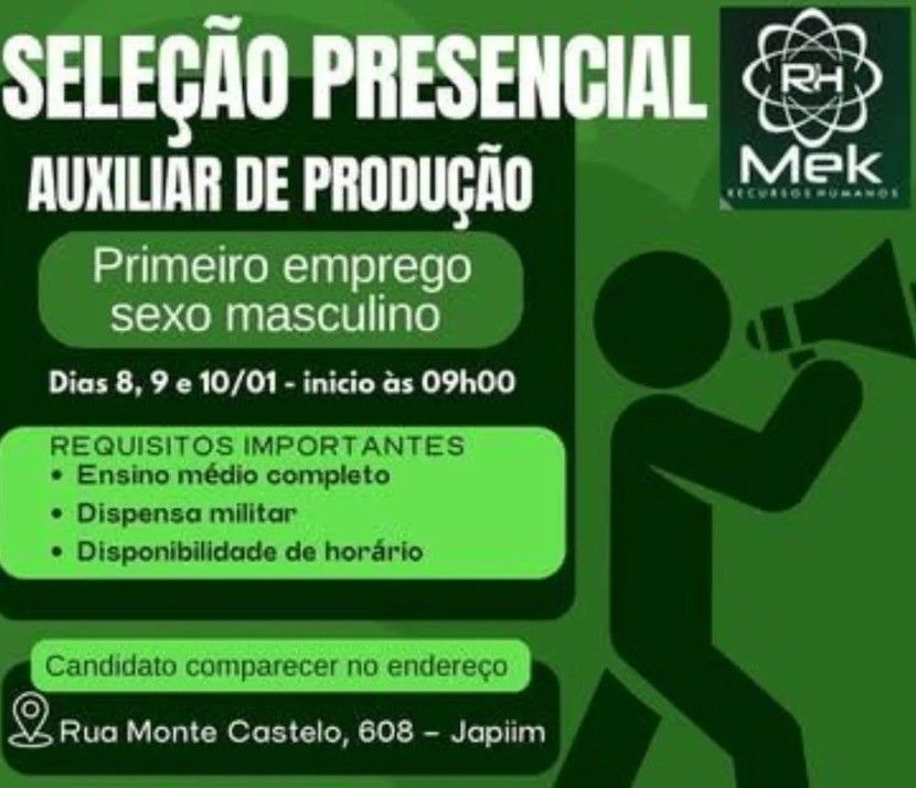 Empresa seleciona para vaga de Auxiliar de produção primeiro emprego; Saiba como se candidatar!