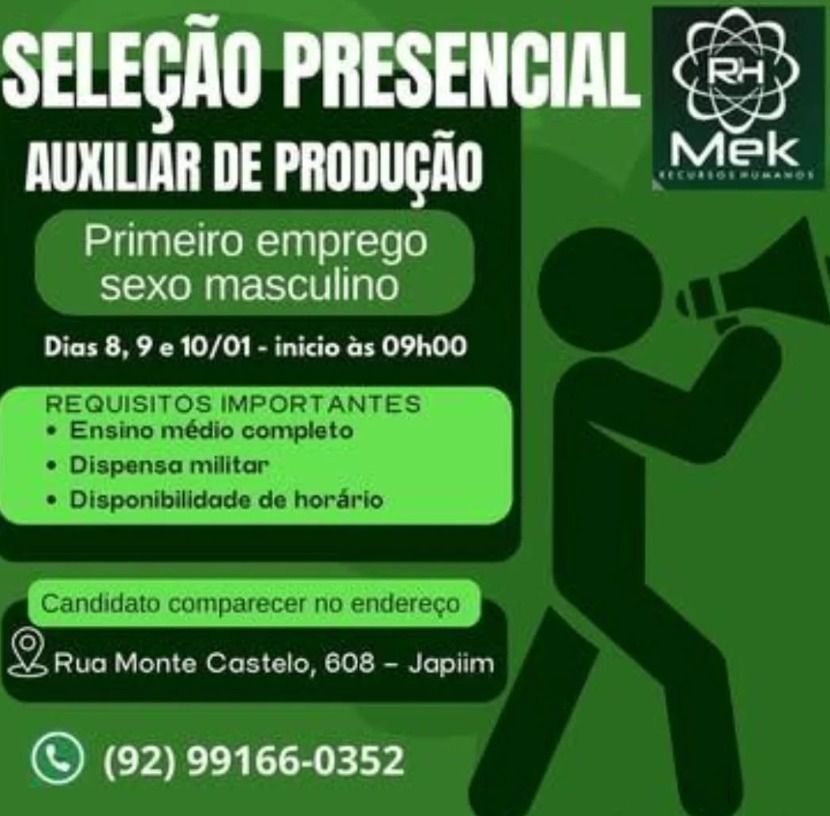 Operador de produção I para Trabalhar na Fábrica Da Elgin