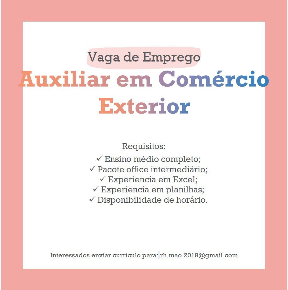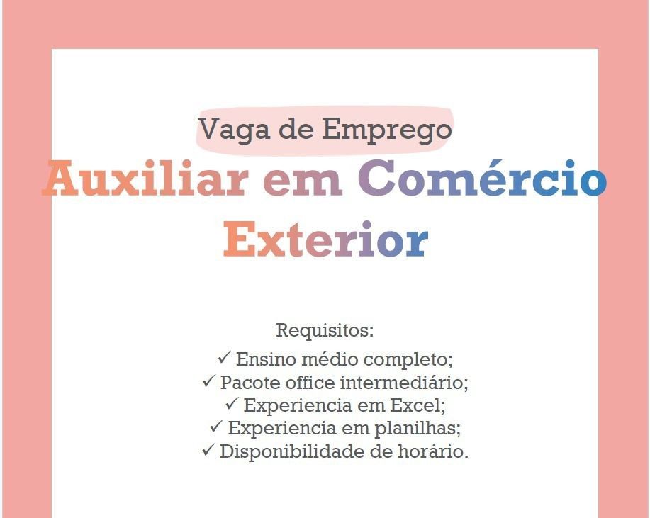 Empresa seleciona para vaga de Auxiliar em comércio exterior; Envie seu currículo!